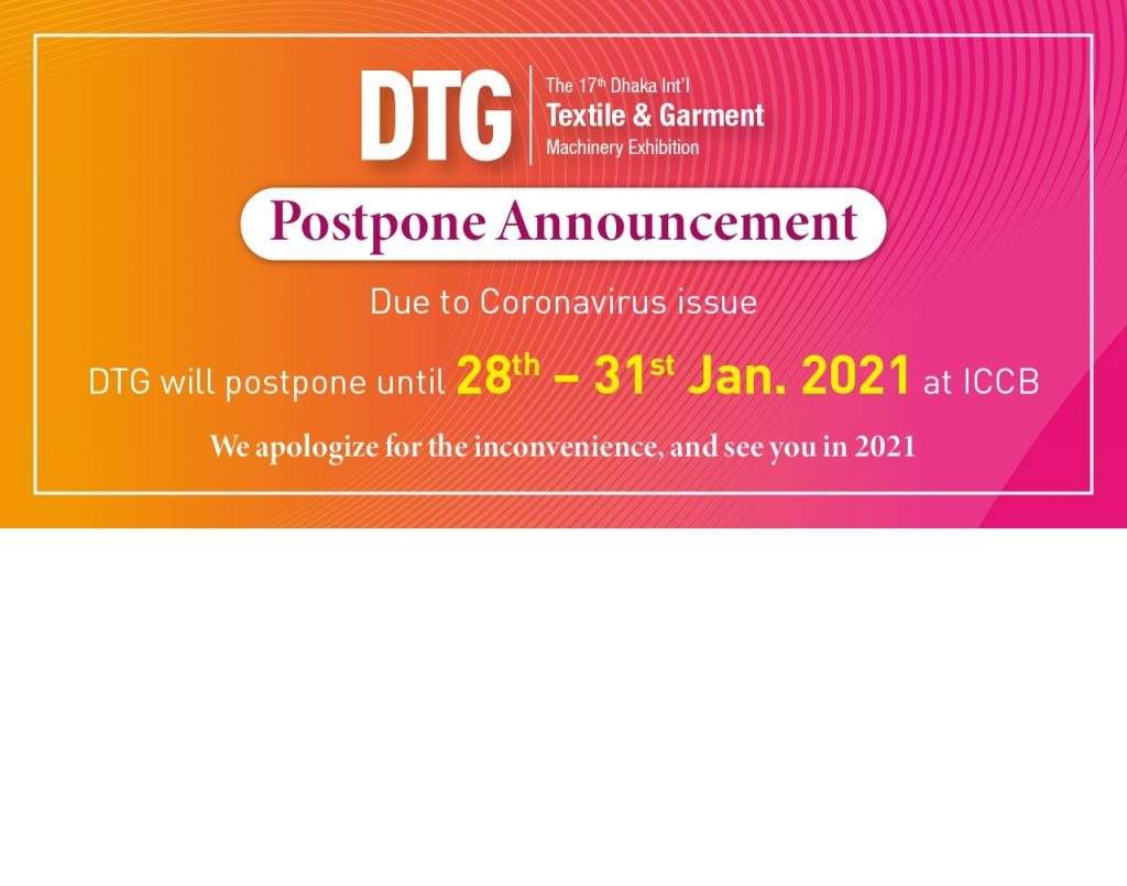 第十七屆達卡國際紡織服裝機械展覽會(DTG)延期通知